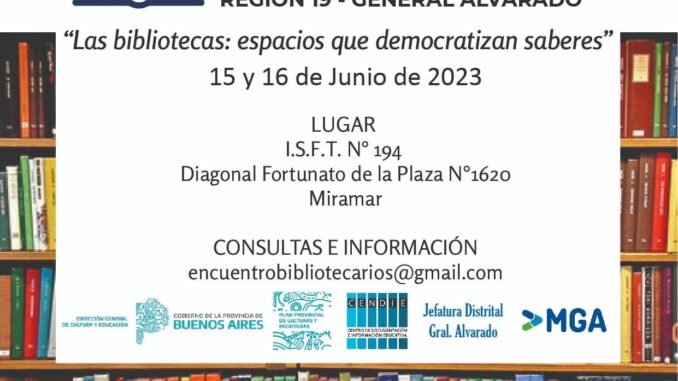 Se llevará adelante los días 15 y 16 de Junio el 2° Encuentro Regional de Bibliotecarios de la Región 19 en la ciudad de Miramar (ISFT N° 194).
