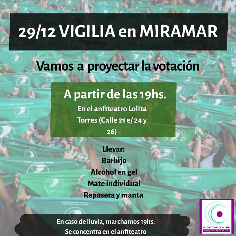 Este martes la Cámara de Senadores tratará en sesión el proyecto de ley que legaliza la interrupción voluntaria del embarazo en Argentina y, en Miramar, organizaciones feministas organizaron una vigilia para seguir, en vivo y al aire libre, el tratamiento legislativo.
