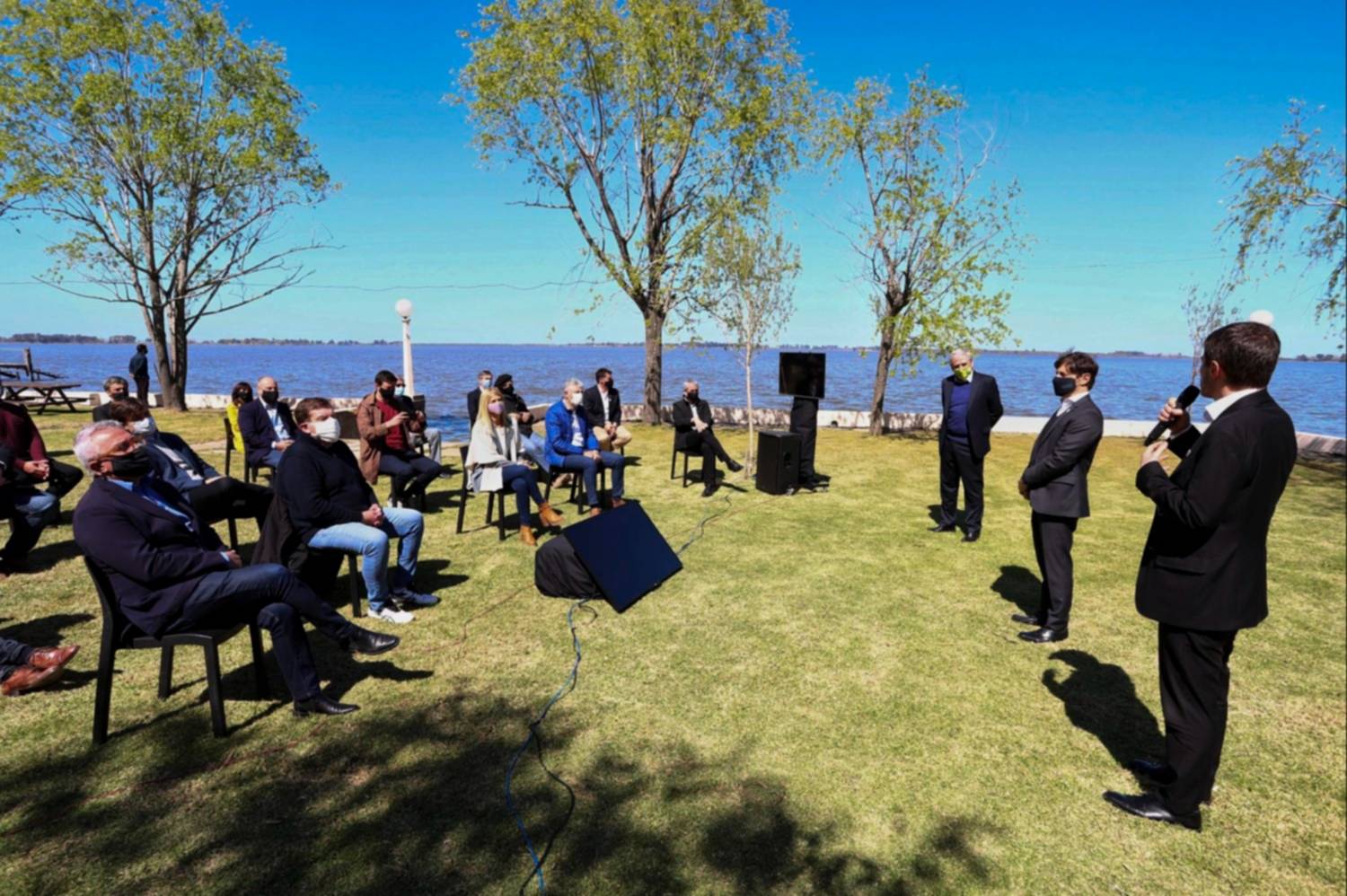 Durante el anuncio estuvieron presentes la vicegobernadora Verónica Magario y los intendentes Daniel Cappelletti (Brandsen); Jorge Ferraresi (Avellaneda); Francisco Echarren (Castelli); Sebastián Ianantuony (General Alvarado); Osvaldo Dinápoli (General Belgrano); José Rodríguez Ponte (General Lavalle); Juan Manuel Álvarez (General Paz); Guillermo Montenegro (General Pueyrredon); Gonzalo Peluso (Magdalena); Alejandro Dichiara (Monte Hermoso); Lucas Ghi (Morón); Martín Yeza (Pinamar); Hernán Y Zurieta (Punta Indio); Julio Zamora (Tigre); Gustavo Barrera (Villa Gesell); y Jorge Eijo (General Belgrano).