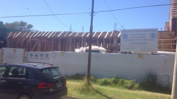 A ritmo sostenido continua la obra del nuevo edificio del Banco de la Nación Argentina que se levanta en la avenida 26 casi esquina 9, en un lote amplio y en un lugar privilegiado de la ciudad.