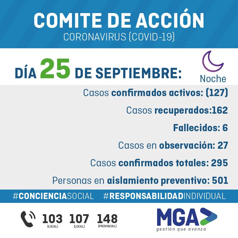 Según el último parte oficial se sumaron cinco nuevos casos confirmados de coronavirus. La buena noticia es que hubo trece nuevos casos recuperados y bajó considerablemente el número de casos en observación, son 27