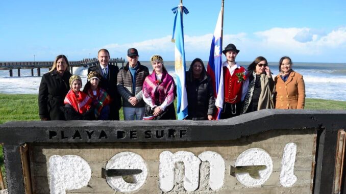 Un cartel identificatorio de dicho sector fue lo elegido. así se lo conoce en la jerga surfista. En dicho lugar participo el Embajador de Eslovenia en Argentina Alain Brian Bergant.