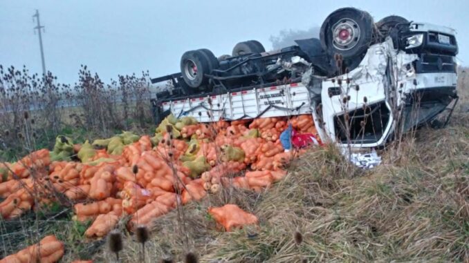El hecho ocurrió este martes 13 de julio alrededor de las 7 de la mañana, cuando el conductor de una Renault Kangoo colisionó de frente contra un camión DFM que transportaba zapallos, a la altura del paraje San José y a 35 kilómetros de Miramar.