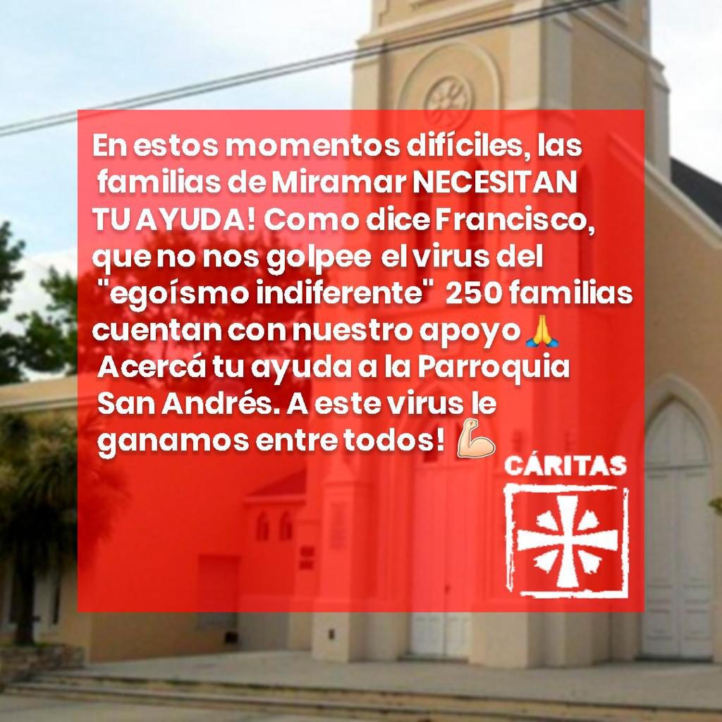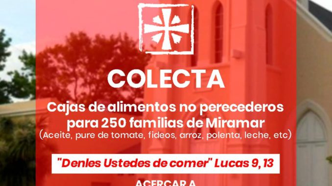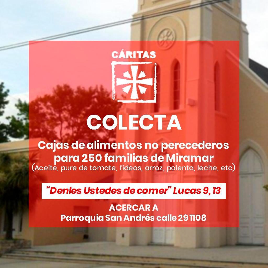 Desde la parroquia San Andrés estarán recolectando alimentos para 250 familias de Miramar. Deben ser alimentos no perecederos.