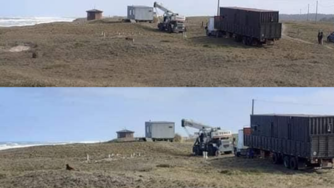 Esta fue la denuncia que realizó en su red social facebook Carlos Alberto Canelo: «Esto ocurrió en el día 31 de agosto del 2020, se puede ver , bien claro el lugar es Centinela del Mar Pcia de Bs As, cerquita de Miramar, partido de Gral Alvarado, Personajes de la estancia San Martin del Partido de Loberia , Interrumpieron , con grua , camiones y conteiner, a USURPAR EL PREDIO PROYECTADO PARA LA FUTURA RESERVA, ACTITUD MISERABLE DE ESTOS GARCAS QUE APROVECHAN TIEMPOS DIFÍCILES PARA SEGUIR CON SUS CONDUCTAS DE TOMAR TIERRAS ,QUE SON DE TODOS , quiero aclarar que el lugar esta protegido por una ordenanza Municipal del año 92, donde se declara de interés arqueológico y Paleontológico ,además se está trabajando para la implementación de un polo Científico y una declaración de reserva natural a nivel provincial pedimos amplia difusión del tema y sancionar tal atropello. «