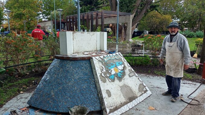 A pesar del mal tiempo, se continúa trabajando en el nuevo Paseo en homenaje a nuestros Héroes de Malvinas. Las distintas áreas municipales, Forestal, servicios y todos los que tuvieron que ver con este proyecto.