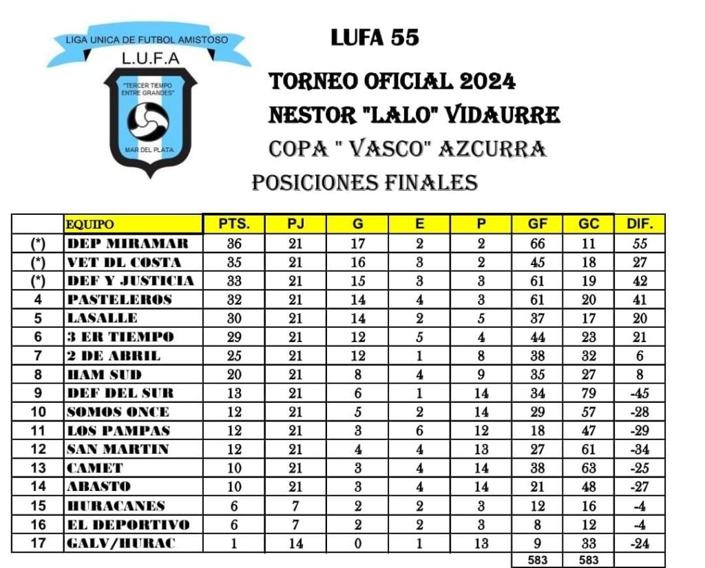 El equipo miramarense del fútbol de veteranos de Mar del Plata logró consagrarse nuevamente campeón del torneo Nestor «Lalo» Vidaurre teniendo la vaya menos vencida y siendo el equipo más goleador del torneo.