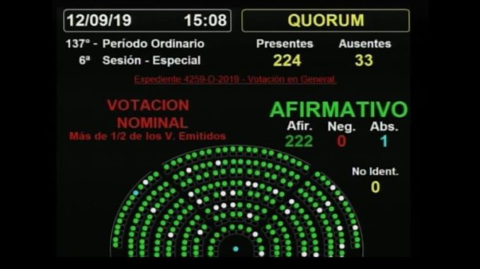Este jueves 13, pasadas las 15:00 hs., la Cámara de Diputados de la Nación dio media sanción a la Ley de Emergencia Alimentaria. La misma recibió el voto positivo de 222 legisladores y no tuvo votos en contra. El proyecto ahora tiene media sanción.