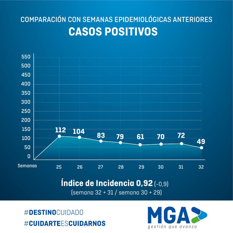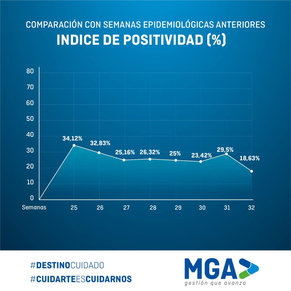 El índice de positividad es el más bajo desde el inicio de la pandemia pero, ¿Qué es esta información tan importante para la comunidad?. Se dio el Informe de estado de Situación de coronavirus en nuestro distrito sobre la semana Epidemiológica 32, del 8/08 hasta el 14/08 inclusive, Comparación de la curva de contagio y la evolución en las últimas 8 semanas.