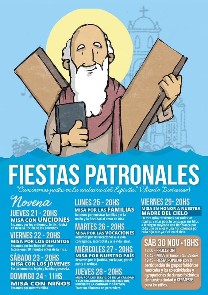 Desde este jueves hasta el sábado 30 de noviembre, día que se hará la misa en honor a nuestro patrono San Andrés y una gran fiesta popular con grupos folkloricos y la tradicional kermesse, nuestra comunidad vivirá las “Fiestas Patronales”.