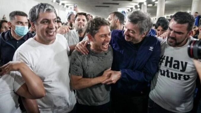 La foto más llamativa es la que muestra a Máximo con el gobernador de la provincia de Buenos Aires, Axel Kicillof, en la que ambos aparecen riendo y marchando juntos, luego de semanas de rumores de un enfriamiento en su relación. El encuentro, además, se dio en paralelo a otro acto, el que encabezó el presidente Fernández en el Ministerio de Ciencias.