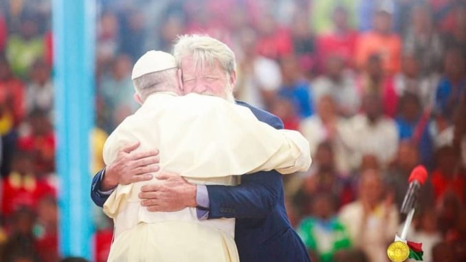 Hijo de inmigrantes eslovenos en la Argentina, Opeka, que fue alumno de Jorge Bergoglio en la Facultad de Teología hace más de cincuenta años, como recordó Francisco, fue el gran coprotagonista de la jornada. Tras ser recibido en Akamasoa como un héroe por miles de personas entonando un clásico canto de Iglesia argentino, no bien pisó el lugar Francisco se fundió en un fuerte y emotivo abrazo con él, a quien le agradeció su “gran obra” y “testimonio profético y esperanzador”.