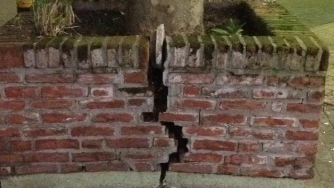 Los problemas no solo son de los barrios, con las calles destrozadas y falta de luminaria. En pleno centro, calle 21 y 20 de Miramar se refleja esta imagen. Un cantero partido al medio, a punto de desprenderse.