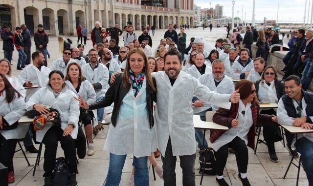 En la explanada del Hotel Provincial los Diputados Nacionales Martín Tetaz y Danya Tavela dieron una clase pública frente a más de 100 “alumnos”. Sorpresivamente los emblemáticos lobos marinos se vistieron con el mismo guardapolvo que los estudiantes que presenciaron la clase.