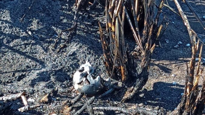 El lugar se encuentra a unos 7 kilómetros de la zona céntrica de Miramar, antes de llegar al arroyo “La Totora”, donde su produzco la parte más compleja del voraz incendio hace poco más de una semana Allí, según el trabajo de policía científica fueron individualizados un cráneo, parte costal y otros huesos que en principio pertenecerían a una persona adulta y habrían quedado al descubierto tras los daños que dejó el fuego.