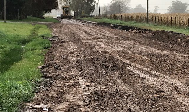 Llamo la atención que con esas condiciones climáticas y con el barro existente se estuviera realizando un trabajo que exige material seco, pata de cabra, rodillo neumático para que de resultados y tenga efectos en el tiempo. Una forma particular de realizar las tareas: “Entoscando bajo la lluvia”.