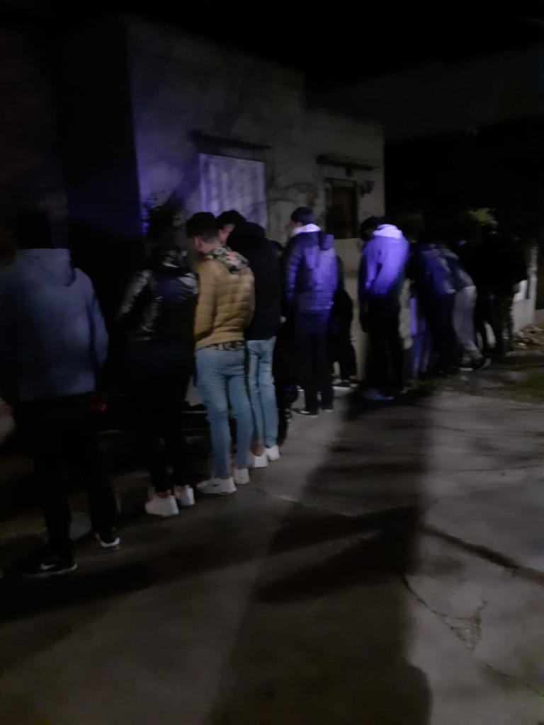 En calle 29 al 1400 la policía desactivo una fiesta clandestina en plena vereda. Cerca de diez jóvenes estaban con música a todo volumen sin respetar las medidas de aislamiento social preventivo y obligatorio.