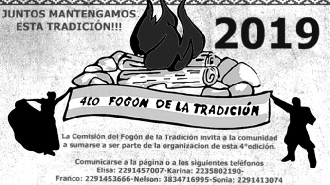 La Comisión del Fogón de la Tradición invita a la comunidad en general a sumarse a ser parte de la organización de esta 4º edición. Comunicarse a la página de Facebook: 4º Fogón de la Tradición o a los siguientes teléfonos para más información: