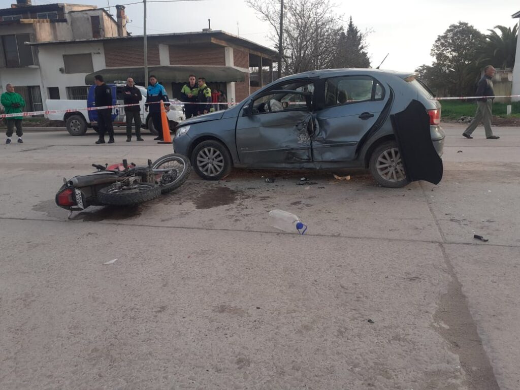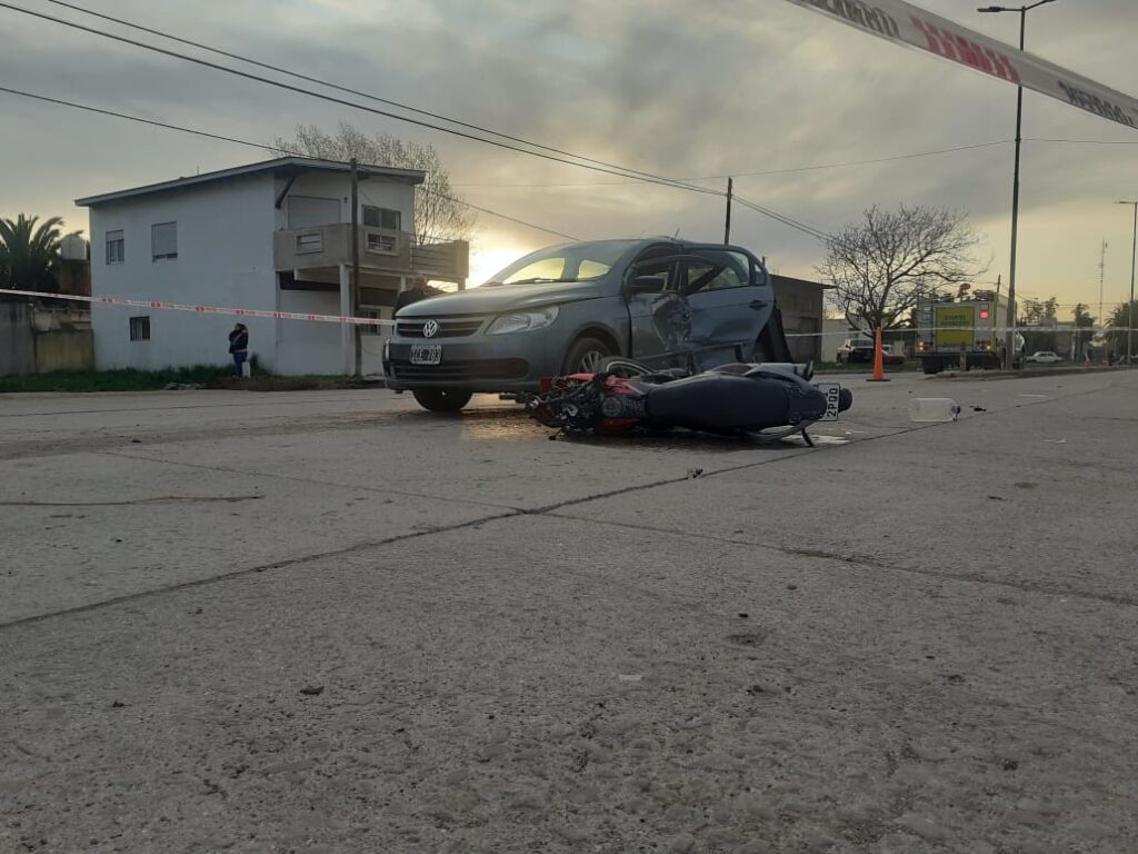 Un auto y una moto colisionaron en plena avenida 9 y calle 66 de Miramar. El conductor del motovehículo habría sufrido un fuerte golpe en su cadera, mientras que, el dueño del auto tuvo que ser sacado por personal de bomberos de Miramar. fuente: Miramar Informa