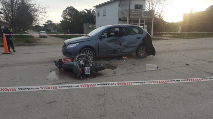 Un auto y una moto colisionaron en plena avenida 9 y calle 66 de Miramar. El conductor del motovehículo habría sufrido un fuerte golpe en su cadera, mientras que, el dueño del auto tuvo que ser sacado por personal de bomberos de Miramar. fuente: Miramar Informa