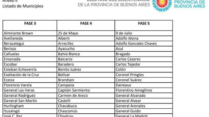 Mientras que la Fase 3 será los municipios en los cuales se haya producido un brote o un aumento significativo y repentino de casos COVID-19, y los municipios pertenecientes al AMBA.