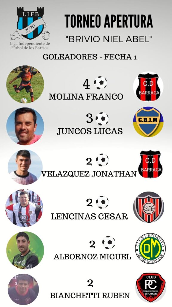 La barraca lidera la liga barrial gracias a los goles de Molina 30 mayo, 2022 Deportes La barraca goleó 5 a 0 a Mar del Sur con una gran actuación de Franco Molina, figura del último campeonato con Las Palmas y este 2022 le da alegrías al rojinegro.