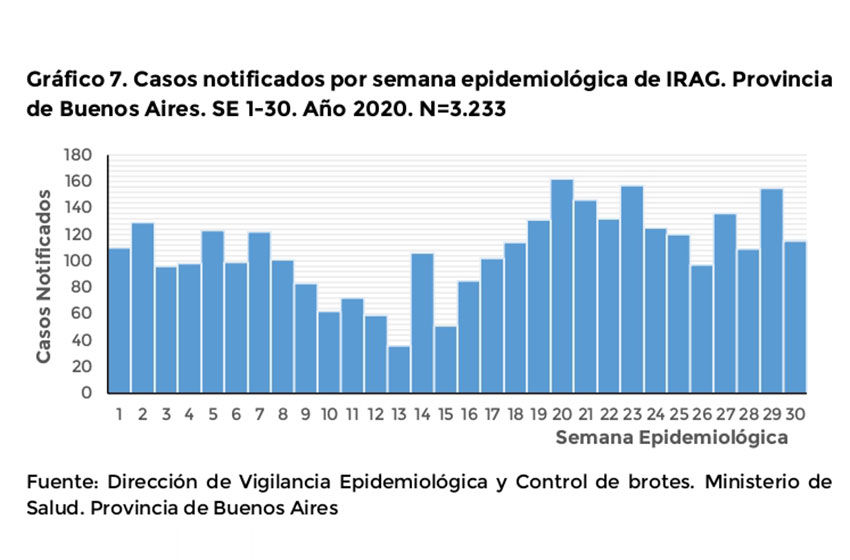 En el último Boletín Epidemiológico publicado por el Ministerio de Salud de la Provincia de Buenos Aires, «todos los años se verifica un progresivo aumento de los casos de Infecciones Respiratorias Agudas Bajas (IRAB) en la época invernal con el consecuente incremento en la demanda de atención al sistema de salud y en la mortalidad por causas respiratorias. Este comportamiento estacional se ha visto afectado por la emergencia del virus SARS-CoV-2 en el marco de la pandemia mundial en curso».