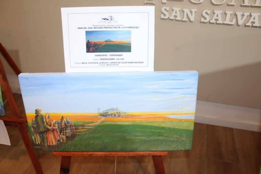En la oportunidad reveló que producto de ésta, pudo hallar recientemente documentación Pampista de valor histórico, firmada por el Pte. Municipal de entonces y fundador de Miramar Don Fortunato de la Plaza y por el Juez de Paz Don Luis M. Dupuy. Acto seguido, presentó la Muestra de Arte colectiva e itinerante “Mar del Sud , Refugio Protector de los Pampistas”, en la que se expusieron las obras que Esteban Abril, Agustina Galarraga, Teresa Karis, Mirijadna Kieffer, Susana Lucero, Laura Mohana, Florencia Muñoz Larreta, Liliana Olivieri, Tomás Píccolo, Néstor Soria Deyuanini, Horacio Spinetto y Marité Svast, realizaron exclusivamente para donar, según el proyecto de la Comisión de Homenaje General Alvarado, a instituciones de colonias entrerrianas como testimonio del importante rol que cumplió Boulevard Atlántico – Mar del Sud junto a sus escasos pobladores de 1892, en la epopeya pampista.