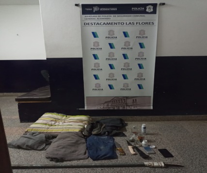 Personal Destacamento Las Flores a cargo de la Oficial Inspector María Jose Mendoza conjuntamente con el Sr.Ayudante Fiscal Dr. Martin Spezia, UFI Descentralizada Miramar, llevaron a cabo labores investigativas a raíz de hecho denunciado con fecha 09/08 a las 22:30hs, donde masculino (28) oriundo de Bs.As fue víctima de Robo Agravado en vivienda de esta localidad; arrojando la rapidez del cumplimiento de las medidas ordenadas, el otorgamiento en la fecha, por parte del Juzgado de garantías nro 4 de Orden de allanamiento, requisa vehicular y personal, en domicilio de calle 25 e/68 y72, procediéndose al secuestro de prendas y elementos sustraídos a víctima, como así también de cuchillos utilizados para cometer ilícito y además el secuestro de dos frascos conteniendo sustancia similar características cannabis , una balanza de precisión entre otros. Dr.Spezia dispuso notificación formación causa para con causante masculino mayor (23) por el delito de ROBO CALIFICADO POR EL USO DE ARMA Y TENENCIA SIMPLE DE ESTUFACIONES disponiéndose su APREHENSION Y TRASLADO U.P 44 BATAN .-