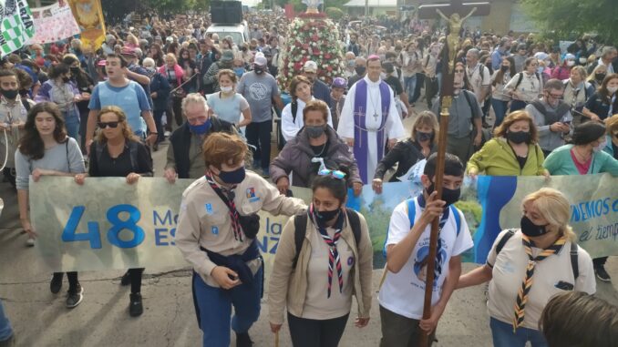 Miles de fieles participaron este sábado de la Marcha de la Esperanza, que se desarrolló en el formato tradicional de peregrinación callejera con paradas en distintas parroquias. En la culminación de la 48° edición, con la celebración de la misa en la Catedral, el obispo Gabriel Mestre aseguró que “con María marchamos en esperanza, este es el tiempo favorable”.