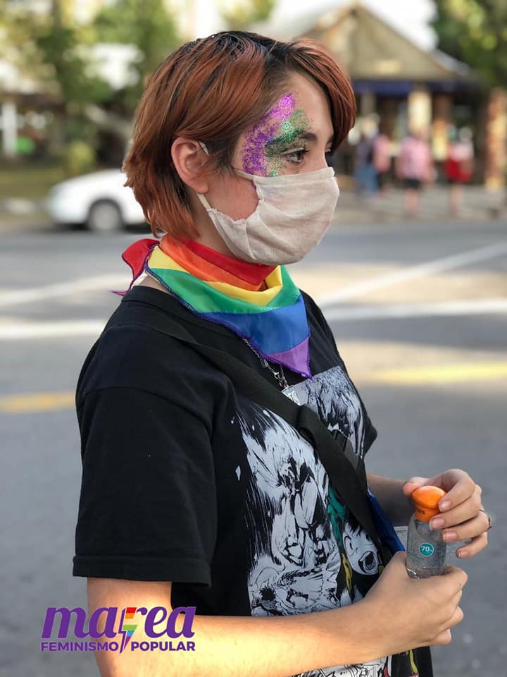 Con carteles, tapabocas, cánticos y banderas con mensajes en alusión a la lucha feminista, miramarenses de todas las edades comenzaron a agruparse desde las 17 en la Av. 26 y 21.