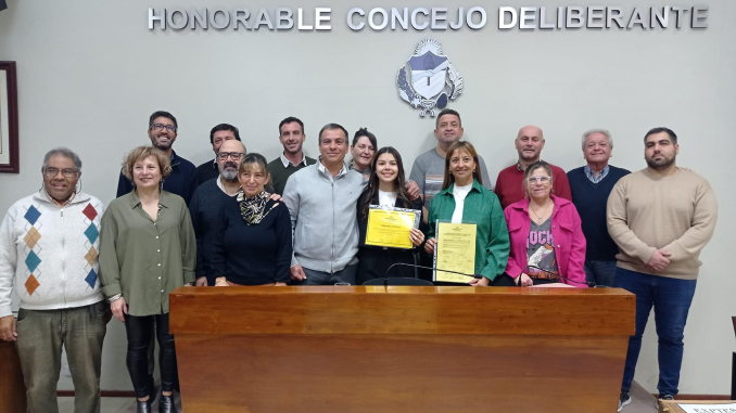El Concejo Deliberante de Gral. Alvarado en su reunion del dia 28 de agosto reconocio a la cantante local Miranda Sotelo como Embajadora Cultural del Distrito. Un merecido lauro a la joven artista que ha abrazo el canto y la musica vocacionalmente. Con el apoyo de sus padres German y Mariela, viene llevando adelante una carrera que enorgullece a los alvaradenses. El proyecto tuvo como iniciador al concejal Mariano Bove y fue aprobado por la totalidad de los integrantes del Concejo que hicieron entrega de la ordenanza que le da tal mérito. Felicitaciones Miranda!
