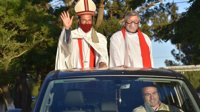 Con la presencia del Obispo Gabriel Mestre y el cura párroco Pablo Boldrini se realizó la procesión en automóviles además de una cantidad de gauchos con sus caballos.
