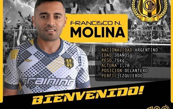 Francisco Molina extremo por izquierda, de último paso por Sarmiento de Junín, fue oficializado en las últimas horas como el quinto refuerzo del Aurinegro.