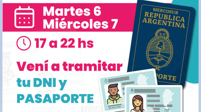 El mismo miércoles, de 17:00 a 22:00 hs., el Móvil DNI vuelve a atender en la Plaza “Malvinas Argentinas” (Av. 26 y 23).