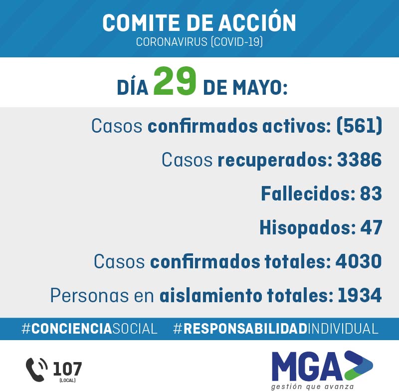 Hay 28 nuevos casos de coronavirus: 26 por laboratorio y 2 por criterio epidemiológico.