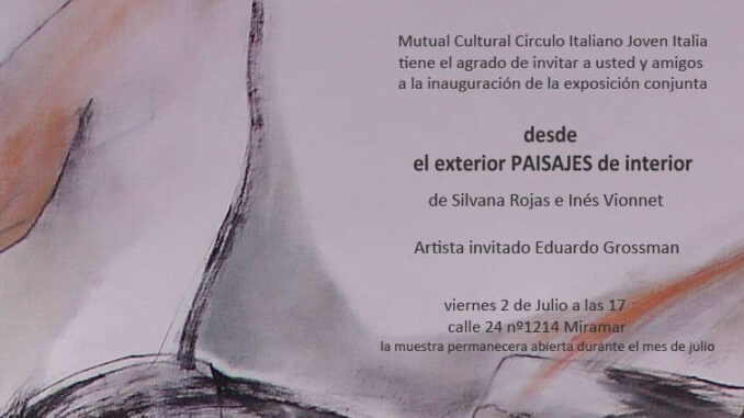 Por medio de esta misiva queremos invitarlo a la inauguración de la próxima exposición de julio que se llevará a cabo el día 2 de julio del presente año a las 17 horas, en nuestra Sala Vicente Asili en la calle 24 1214, en la ciudad de Miramar.