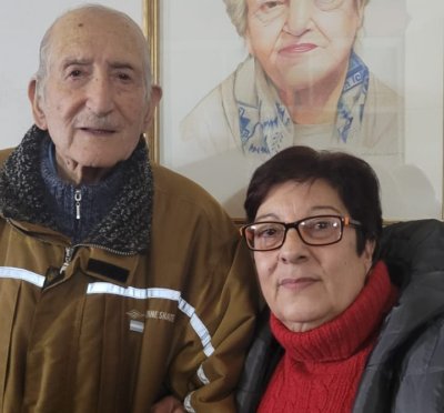 Foto: Adriana junto a Nereo Dimarco y el retrato de la querida Nelly Garcia su madre