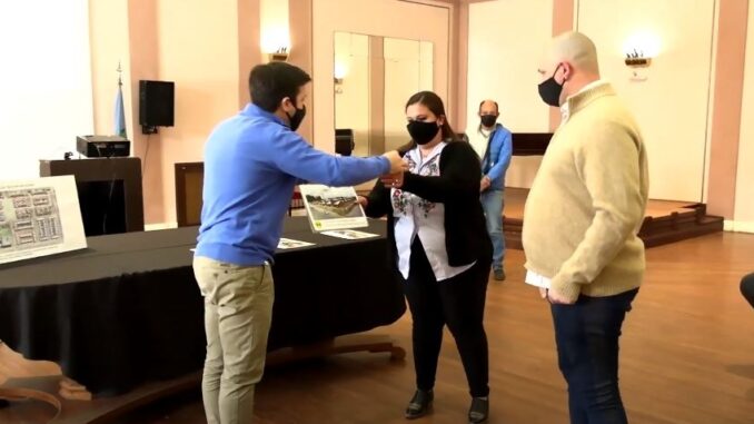 El jefe comunal participó de la ceremonia que se realizó de manera desdoblada. Por un lado en el Salón de Actos de la Comuna, en el que también participaron de manera virtual funcionarios del gobierno provincial y del Instituto de la Vivienda. Por otro, en el propio Barrio de Av. 98 y 85, con entrega simbólica de llaves en ambos momentos.