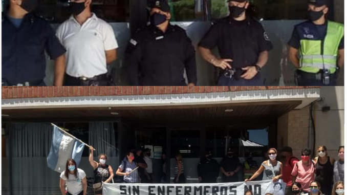 «No somos delincuentes, somos enfermería de Gral. Alvarado reclamando por un salario digno, ¿Qué se piensan que podemos hacer? Que triste ver un estado que quiera dar esta imagen» Así se expresaron las enfermeras al ver que el intendente envió policías a la puerta de la municipalidad en la manifestación de las enfermeras.