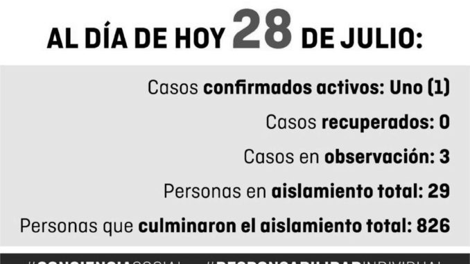 El mismo es de un trabajador de la salud del Hospital Municipal. Fué aislado en su domicilio con síntomas leves y tratamiento domiciliario, el resultado positivo fue publicado en el SISA el día martes 28 del corriente a última hora.