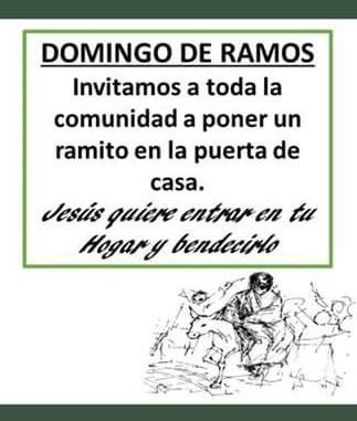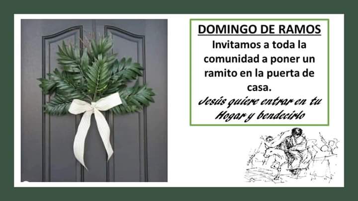 Esta vez me comunico con Uds para sugerirles como comenzar juntos la Semana Santa con el tradicional Domingo de Ramos. Podrán, como ya les dije, participar en familia y a la vez todos juntos como comunidad de San Andrés, a través del Facebook de la Parroquia, del Canal 10 Miramar o la pantalla del mismo canal y también por el Facebook del Semanario El Argentino.