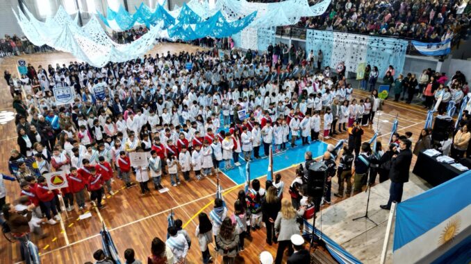 El Jefe Comunal, acompañado por los integrantes del Departamento Ejecutivo y representantes del Deliberativo, así como de entidades intermedias, de seguridad, docentes, alumnos, padres y familias, realizaron esta promesa en medio de un clima de emoción y patriotismo, que se elevó al momento que los ex combatientes de Malvinas de nuestro distrito recitaron las palabras que fueron repetidas por todos los alumnos, comprendiendo, como lo dijo el Intendente Ianantuony en sus palabras, que “Querer a su bandera es querer a su pueblo y a su patria. Todos podemos hacer patria diariamente. Hoy más que nunca, los invito a que sigamos defendiendo todo lo que ella simboliza”.