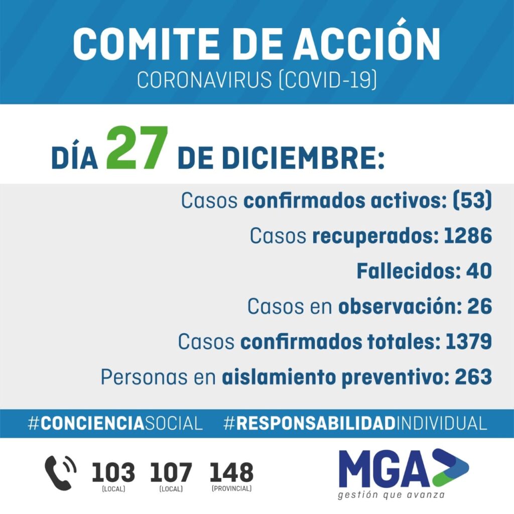 Parte Covid-19 General Alvarado 27/12/2020