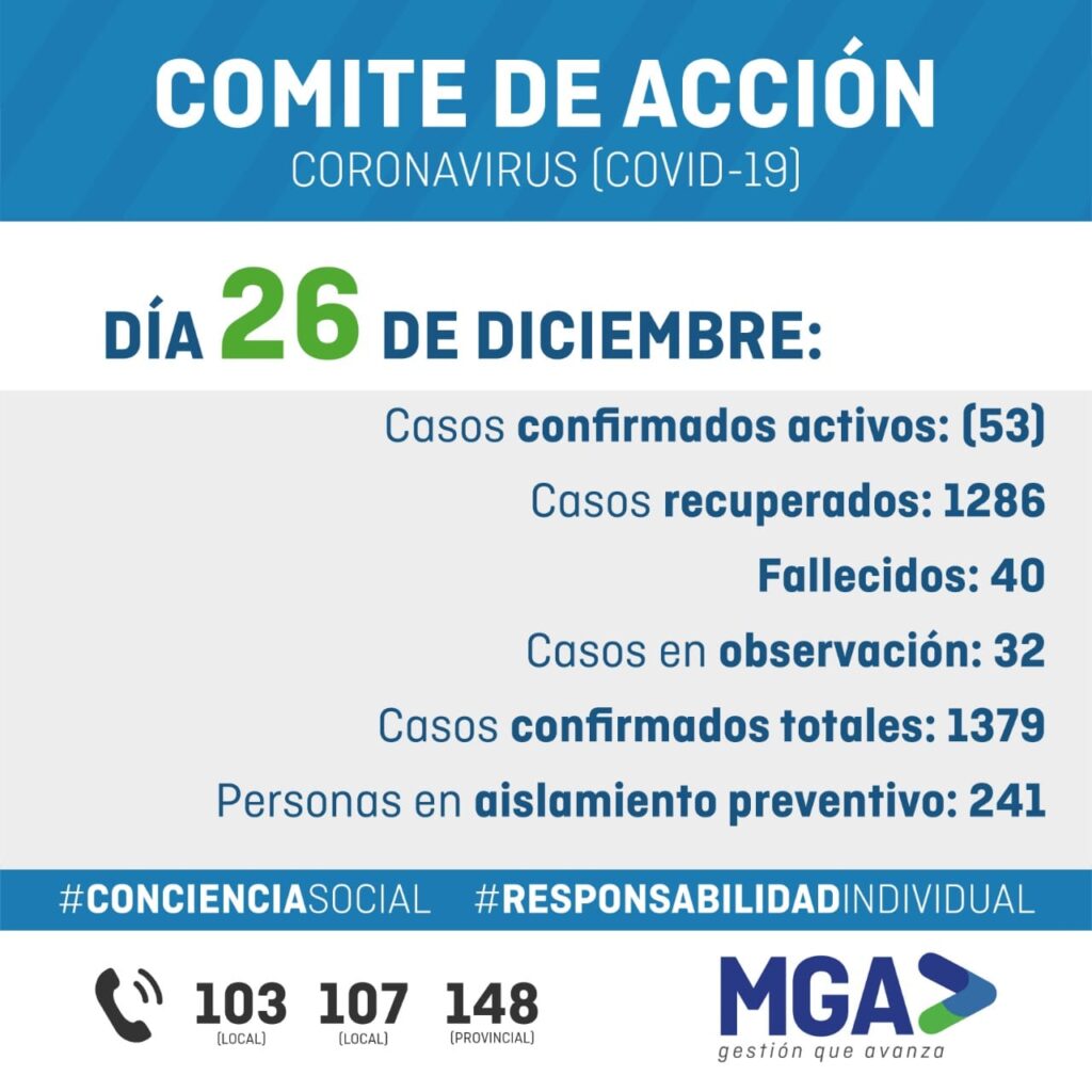 Parte Covid-19 General Alvarado 26/12/2020