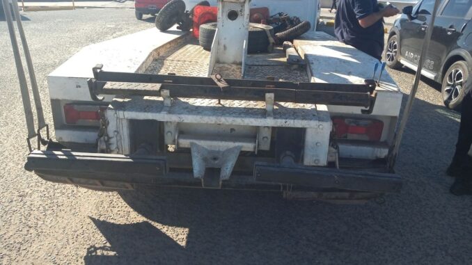 La fotografía que acompaña la nota corresponde al portal Mesa de Entrada local que denuncio la cantidad de multas que realizan los inspectores y los autos que levanta la grua, la que no cumple con la ley de transito, ya que no tiene visible la patente del vehículo. Algo que muestra la precariedad con que se mueve esta Administración. Como el dicho:”Haz lo que yo digo pero no lo que yo hago”.