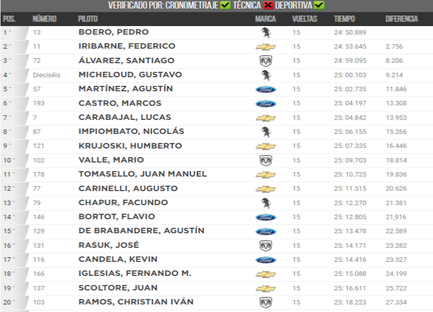 El inicio del fin de semana fue más que positivo para el joven piloto Ivan Ramos. Porque el sábado, luego de ambos entrenamientos, se llevó a cabo la clasificación y el piloto de Mechongue estuvo en los primeros puestos, pero en la final un despiste lo dejó 20°.