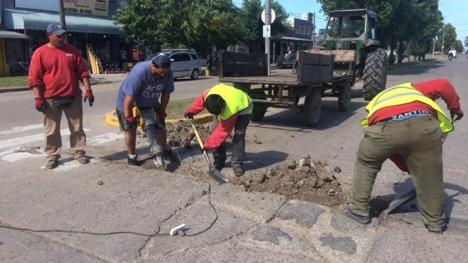 Tarde, pero necesario, ya que era un verdadero peligro. Luego de mucho tiempo las autoridades pudieron comprar el cemento y poner el personal a trabajar. La foto ilustra las tareas cumplidas en el lugar.