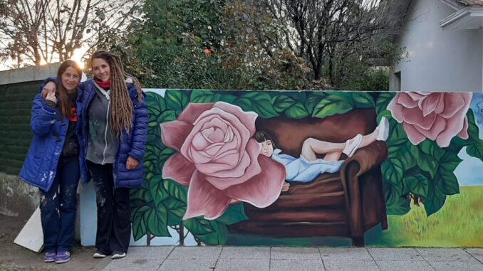 Natalia Gonzalez y Natalia Beresiarte Breser restauraron un hermoso mural de Amanda Britos en Mechongué. Una reconocida vecina del “Pago Lindo”, que se encuentran distribuidos en toda la comunidad. Una hermosa iniciativa de artistas locales para embellecer las ciudades del distrito.