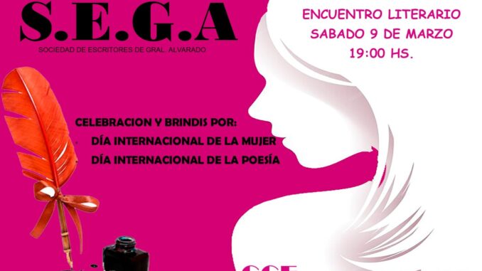 El sábado 9 de marzo a partir de las 19 hs., S.E.G.A desarrollará la quinta actividad 2024, en el Centro Cultural Español de la ciudad de Miramar, ubicado en calle 26 N° 1351. En este encuentro literario, celebraremos y brindaremos por: El día internacional de la mujer y el día internacional de la poesía.